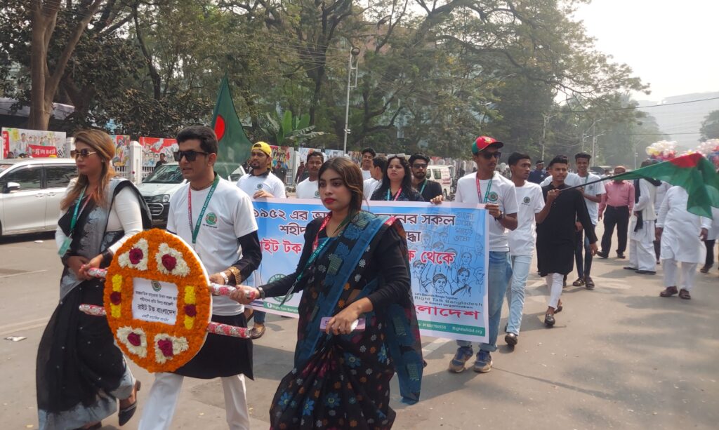 রাইট টক বাংলাদেশ এর অফিস থেকে একটি বিশাল শোভাযাত্রা বের হয়ে রাজধানীর কেন্দ্রীয় শহীদ মিনারে আন্তর্জাতিক মাতৃভাষা দিবসে ভাষা শহীদ ও সৈনিকদের প্রতি বিনম্র শ্রদ্ধাঞ্জী ও পুষ্প্যমাল্য অর্পণ করেছে।