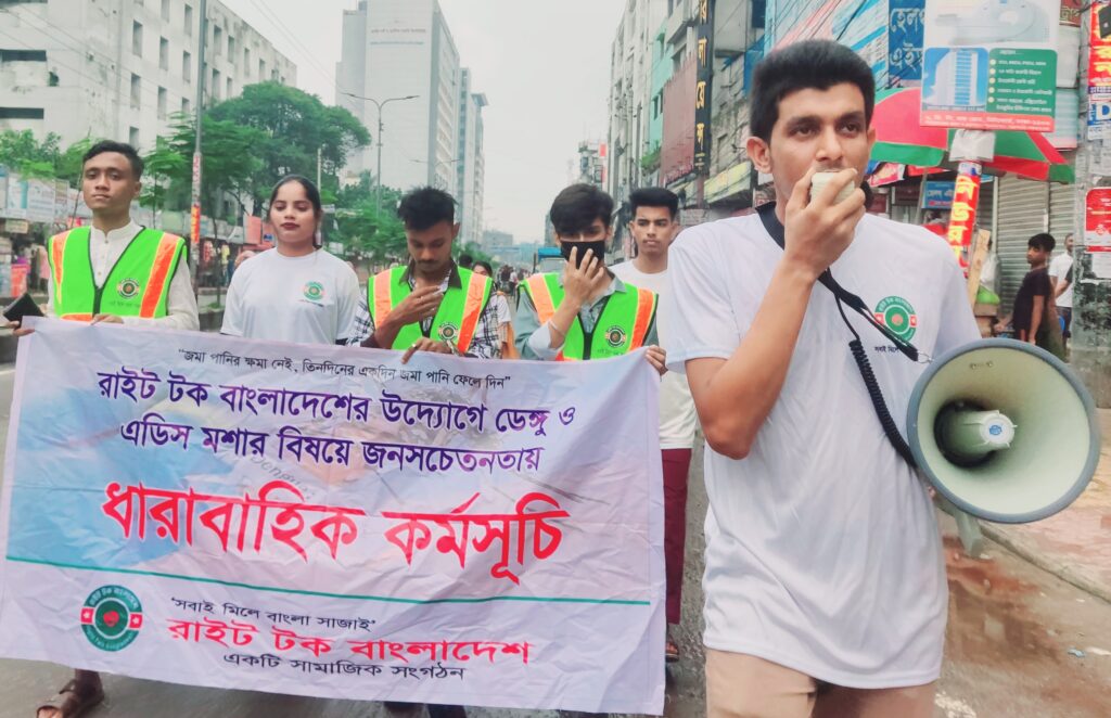 রাজধানীর বিভিন্ন ওয়ার্ডে ডেঙ্গ এডিস মশা বিষয়ে নগরবাসীর মাঝে সচেতনতা সৃষ্টি করে রাইট টক বাংলাদেশ। এটি ধারাবাহিক কর্মসূচি।