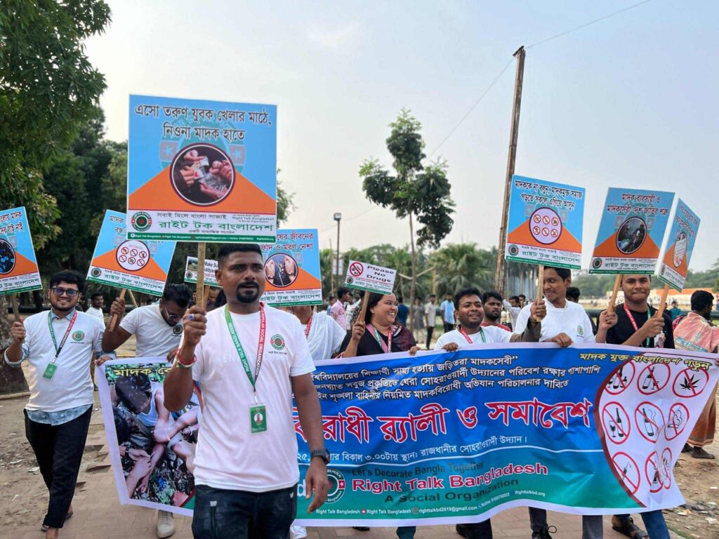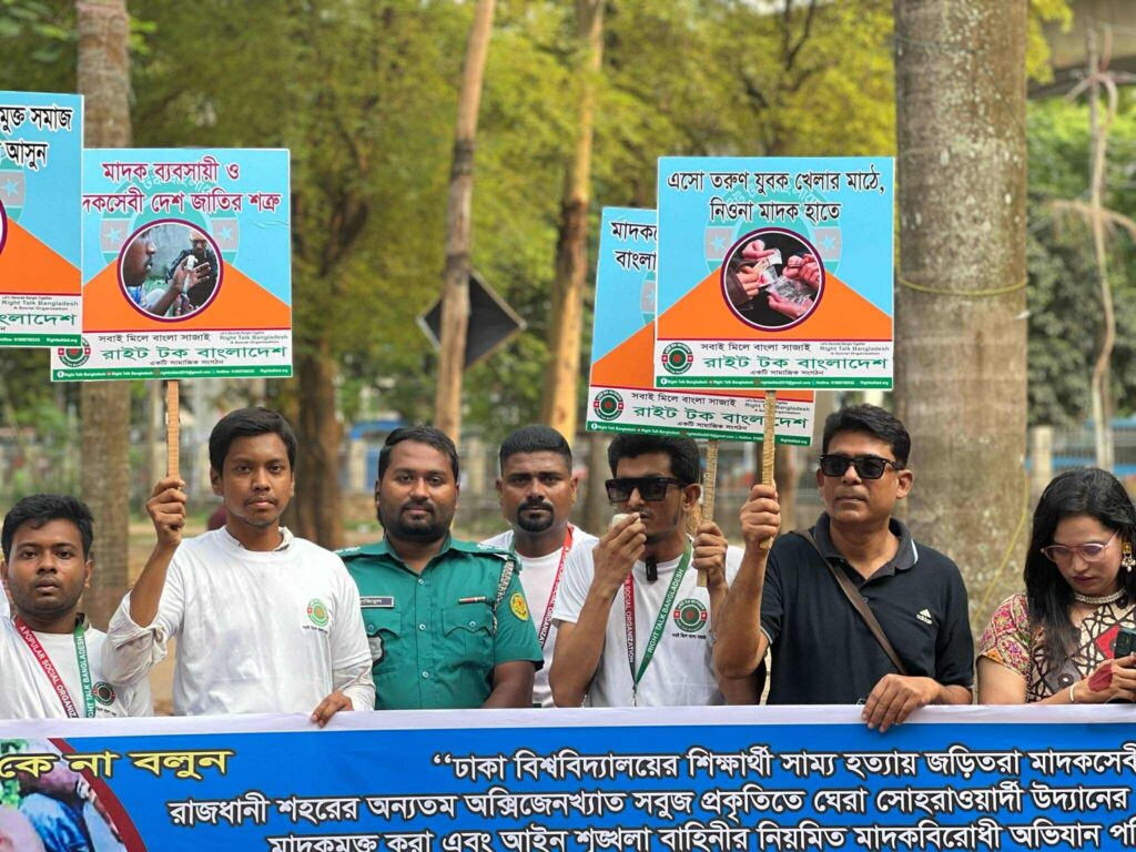 জনপ্রিয় সামাজিক সংগঠন রাইট টক বাংলাদেশ এর উদ্যোগে আজ ১৬ মে ২০২৫ বিকালে রাজধানীর সোহরাওয়ার্দী উদ্যানে বিশাল মাদকবিরোধী র্যালী ও সমাবেশ অনুষ্ঠিত হয়েছে।