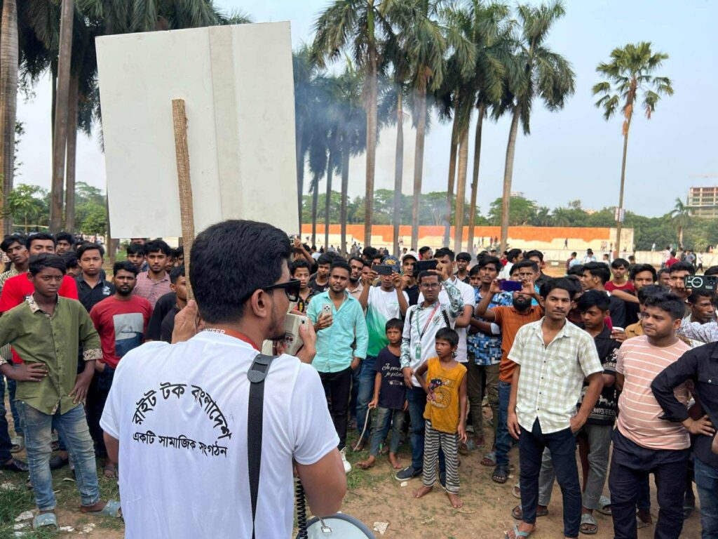 র্যালীটি কালি মন্দিরের গেটের সামনে থেকে বের হয়ে পুরো উদ্যানে ঘুরে মাঠে তরুণ প্রজন্মের উপলক্ষে বক্তব্য রাখেন রাইট টক বাংলাদেশ এর প্রতিষ্ঠাতা ও সভাপতি আল আমিন এম তাওহীদ, সংস্থার উপদেষ্টা সেলিম রেজা, শাহবাগ থানার এসআই মাজিবুল ইসলাম।