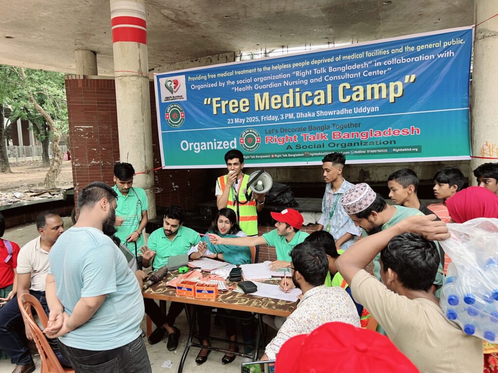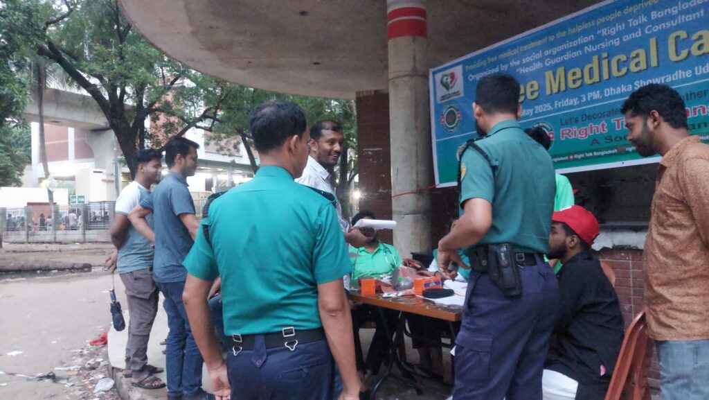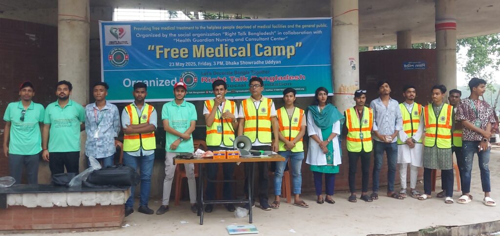 চিকিৎসাসেবা থেকে ব/ঞ্চি/তসহ নানা শ্রেণী পেশার মানুষের মাঝে বিনামূল্যে চিকিৎসাসেবা প্রদান করে জনপ্রিয় সামাজিক সংগঠন রাইট টক বাংলাদেশ এবং হেলথ গার্ডিয়ান নার্সিং কনসালটেশন সেন্টার যৌথ উদ্যোগে।