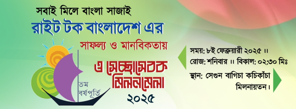 নানা আয়োজনে রাইট টক বাংলাদেশ এর প্রতিষ্ঠাবার্ষিকী পালিত হয়েছে